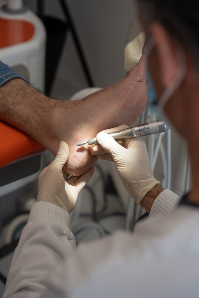 Tratamento de condições e deformidades dos pés, como calosidades, unhas encravadas e biomecânica da marcha.